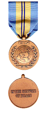 奖章饰带的中间为河沙或米黄色的宽带,象征西奈沙漠,两条深蓝色的线条穿越中间,象征苏伊士运河。饰带两端均有联合国蓝的宽条纹。在特派团服务满90天即有资格获得奖章。
